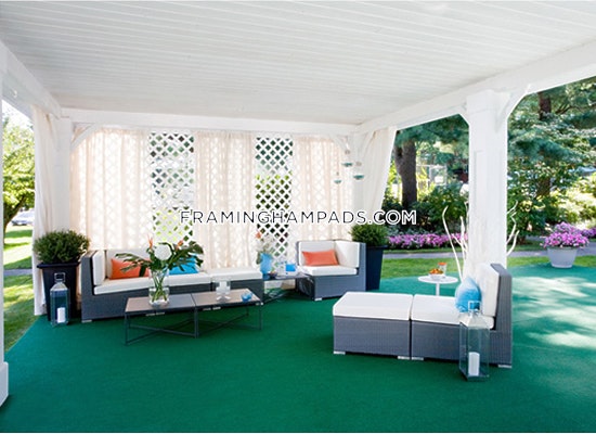 This Luxury building can offer you fantastic rents with the finest amenities. Our privately owned Limousine drives you anywhere you need to go within our "golden miracle miles". Some of our doctors take it to Logan Express, our researchers take it to Genzyme, our professors to Framingham State, while other residents take it to the mall, movies, restaurants and appointments. FREE Community Amenities: • Olympic-Size Swimming Pool • Limousine Service • Special Roommate Apartments • Concierge Service • Business Center with Computer, Fax & High Speed Wireless Internet • DVD Lending Library • Continental Pastry Buffet 7 Days a Week • Open Hearth Bar-B-Que • Shuffle Board Courts • Picnic Recreation Area • Lush Landscaping with Abundant Flowers • Walk to Market • Bus Stop within Walking Distance Apartment Amenities Include: • FREE Heat • Free Hot Water • Air Conditioning • Concierge Service • High Speed Internet Access & Cable-Ready Availability • Laundry Room • Extra Storage • Full complement of appliances • Some with Balconies • 24 Hour Maintenance Service • Country flowered courtyards • Tree Lined Streets • Direct Train Service to Boston • Mass Pike, Rt 128, 495. I-290, Logan Express
